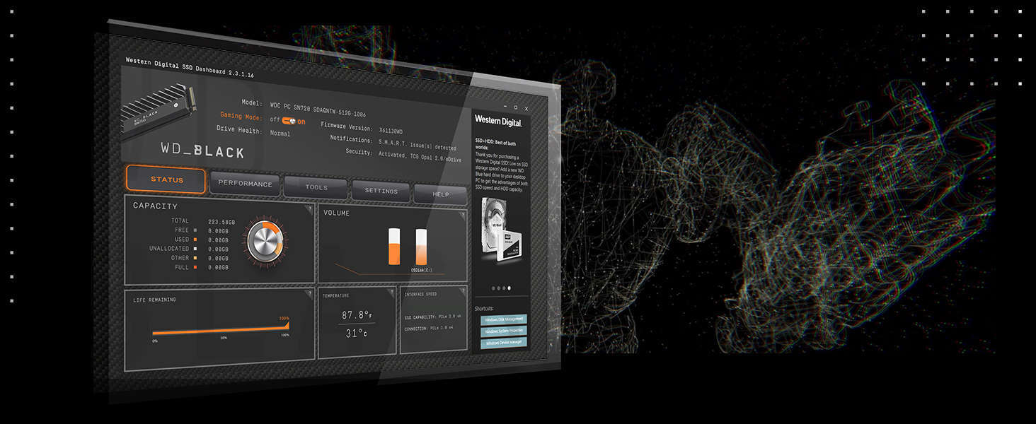 |  | WD SSD Dashboard và Acronis miễn phí đi kèm WD SSD Dashboard giúp bạn theo dõi dung lượng, độ bền, nhiệt độ hoạt động, SMART,... để kiểm soát tình trạng hoạt động của ổ đĩa và dự đoán những rủi ro có thể xảy ra. Và với phiên bản Acronis True Image WD Edition miễn phí đi kèm, bạn có thể sao chép dữ liệu từ ổ cứng cũ sang SSD WD bao gồm tất cả phần mềm và hệ điều hành hiện có, bạn không cần mất thời gian phải cài đặt mới khi thay SSD WD. |